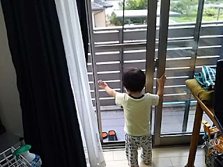 ↑Kaito was standing beside a window when we were drying clothes.