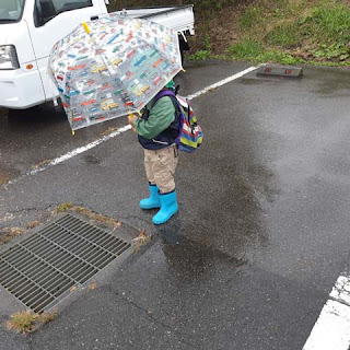 雨がたくさん降っていたので、玄関でTamamiさんを見送りました。