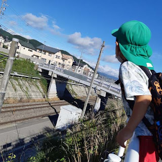 2本の通勤電車を見て、Kaitoマンは保育園に行きました。