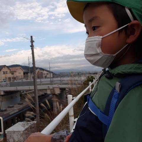 2本の通勤電車にバイバイを言って、保育園に行きました。