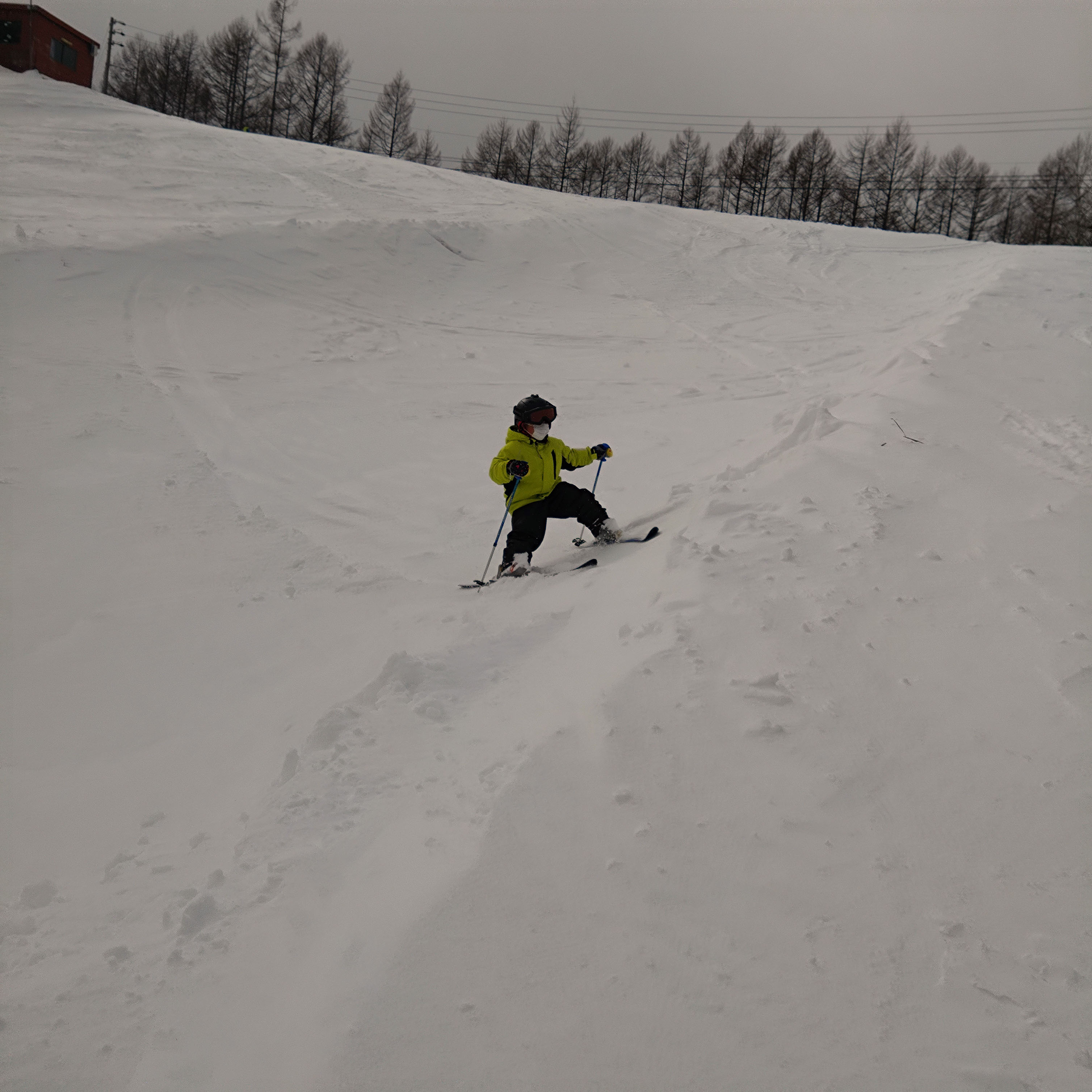 昼食の後、やまぼうしリフトに一人で乗って、パラダイスコース・フィニッシュバーンを滑りました。
