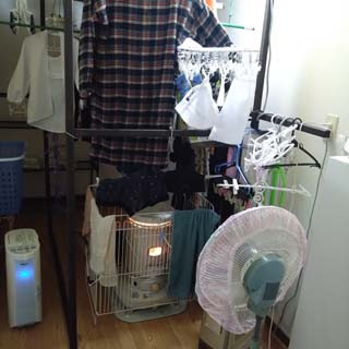 室内に洗濯物を干して、