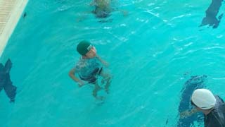 swam a lot and Ichina didn’t be afraid of water maybe because we have swimming
