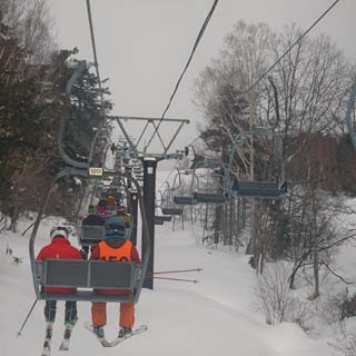 4人乗りリフトが20年前は動いていましたが、今は動かないので、雪が十分な時だけ予約制(30分毎7名)でオープンし、麓で車で拾うのです。